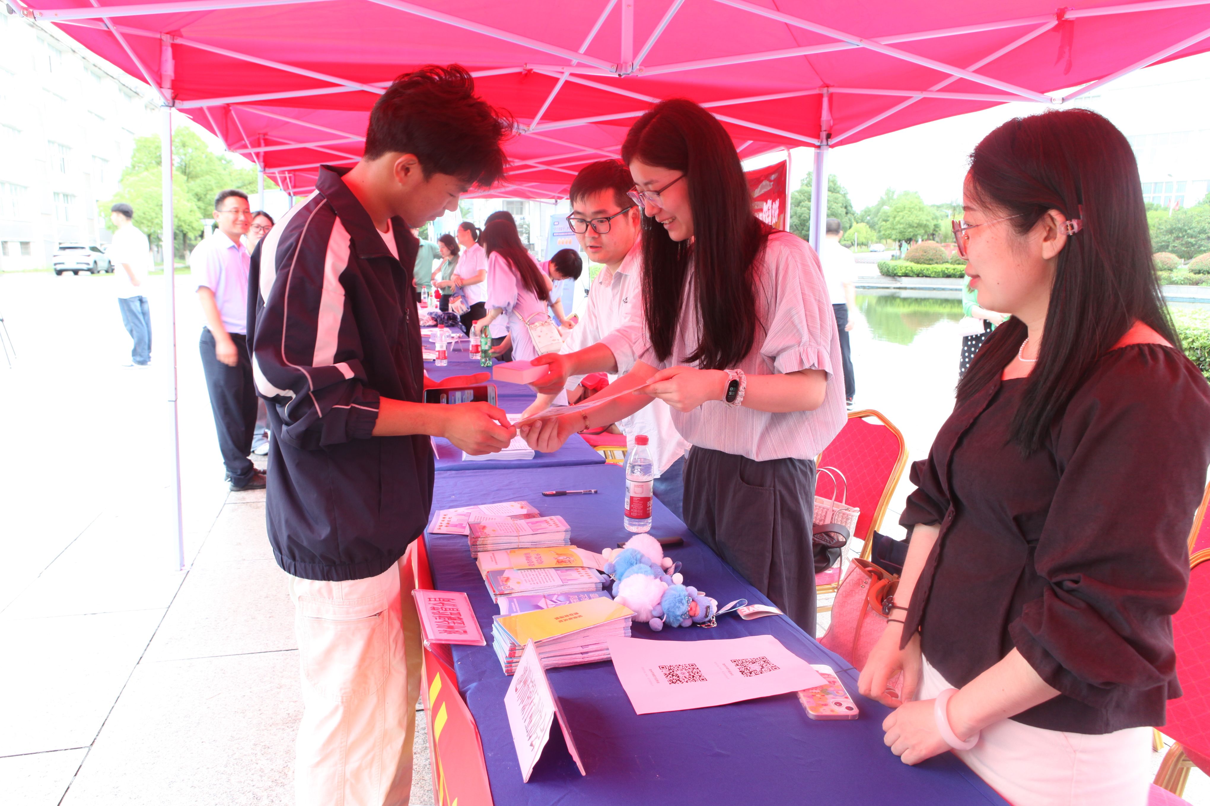 宣讲会开始前,安全管理处会同学生处在校园人流密集处设立了宣传点,向过往师生发放图文并茂的《防范非法集资手册》《校园金融风险提示》等宣传折页,并循环播放揭露诈骗手法、警示风险的短视频。