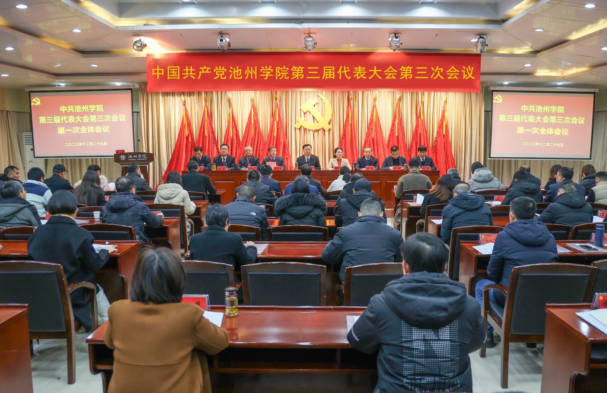 大会强调,2024年是中华人民共和国成立75周年,是全面完成“十四五”规划目标任务的关键一年。全校各级党组织、各单位、各部门要进一步统一思想认识,迅速学习宣传贯彻党代会年会精神,要进一步加强研究谋划,强化统筹协调,认真做好任务分解,雷厉风行抓落实。全体党员领导干部要充分发挥模范带头作用,进一步强化责任担当,以前所未有的奋斗姿态为学校高质量发展作贡献,励精图治,以大作为成就大事业,以真业绩彰显政治品格和人生价值。