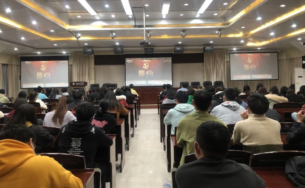 3月22日晚,世界杯官网组织党员在办公南楼报告厅集中观看由中共中央组织部、中央广播电视总台联合录制的《榜样5》专题节目。
