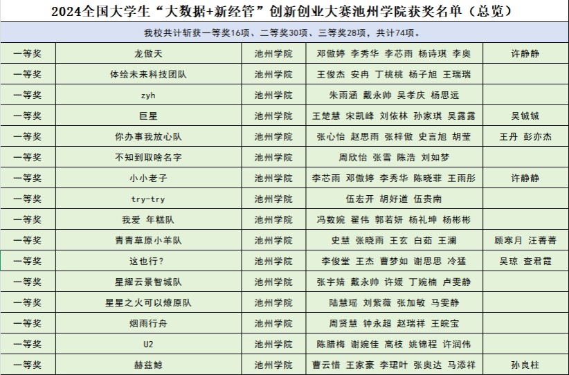 近日,2024全国大学生“大数据+新经管”创新创业大赛成绩揭晓,世界杯官网学子荣获一等奖16项,二等奖30项,三等奖28项,累计获奖74项,实现了在获奖数量和项目质量上的双重飞跃,创历史最佳成绩。