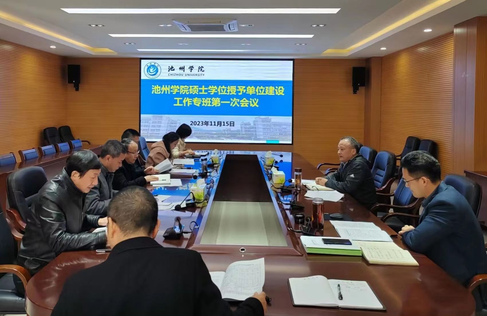 11月15日,学校在行政北二楼会议室召开硕士学位授予单位建设工作专班会议。党委委员、副院长阳光宁主持会议。