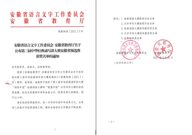 近日,安徽省语言文字工作委员会和安徽省教育厅公布了第三届中华经典诵写讲大赛经典诵读大赛安徽省预选赛的结果,世界杯官网共有6组作品获奖,其中《稻子熟了》(程正文、黄琳琳)、《可爱的中国》(曹勇、樊露露)、《望星空》(魏雅男、范家杰)三组作品荣获二等奖,《与妻书》(曹勇、程晨)、《等待》(唐雪玲、杜玲)两组作品获得三等奖,作品《贺华诞百年,敬我党荣光》(胡梦迪、徐海涛、朱源、李蒙蒙、应温琪、杨勇、陈凡)获得优秀奖。指导教师汪胜水、陈春雷获经典诵读大赛指导教师奖。2026年国际足联世界杯、2026年国际足联世界杯文学与传媒学院均获组织奖。
