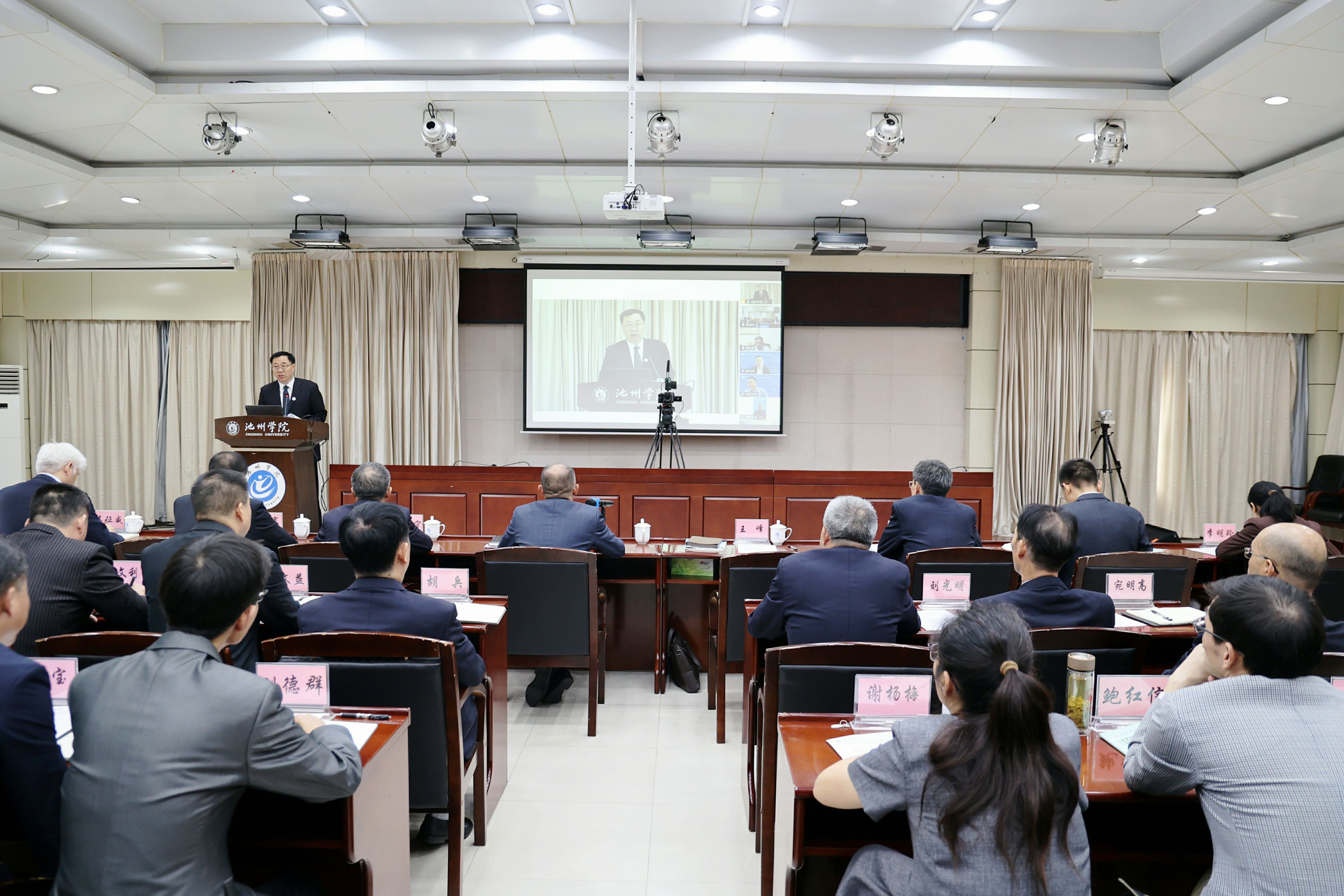 10月13日,学校在办公南二楼会议室召开本科教育教学审核评估线上评估启动会。审核评估专家组组长、南通大学原党委书记浦玉忠,专家组副组长、合肥师范学院党委书记徐成钢及全体专家组成员,安徽省教育厅总督学邵曙光,省教育厅高教处处长蒋正飞,二级主任科员徐菲线上参会。校党委书记王峰,党委副书记、院长王先柱及全体校领导出席会议。会议由王先柱、浦玉忠分阶段主持,采用线上线下相结合方式举行。