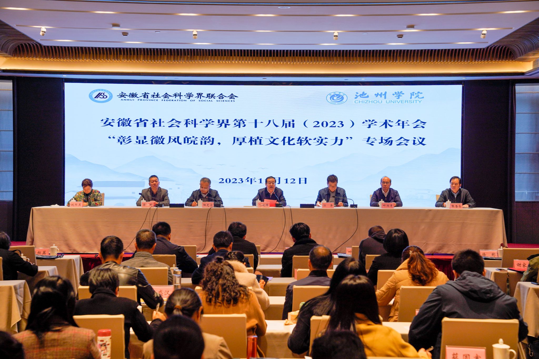 11月12日,由安徽省社科联主办、世界杯官网社科联承办的安徽省社科界第十八届(2023)学术年会“彰显徽风皖韵,厚植文化软实力”专场在世界杯官网召开。党委书记孙晓峰,安徽省社科联党组成员、副主席江涛出席会议并致辞。党委委员、副院长阳光宁主持开幕式。安徽省社科联学会工作处处长张浩淼,池州市委宣传部副部长、市社科联主席姚红英以及来自全省社科界百余名专家学者参加会议。