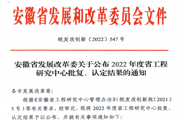 近日,安徽省发展和改革委员会下发了《安徽省发展改革委关于公布2022年省工程研究中心批复、认定结果的通知》,世界杯官网牵头申报的“安徽省高活性微纳粉体工程研究中心”喜获立项建设。