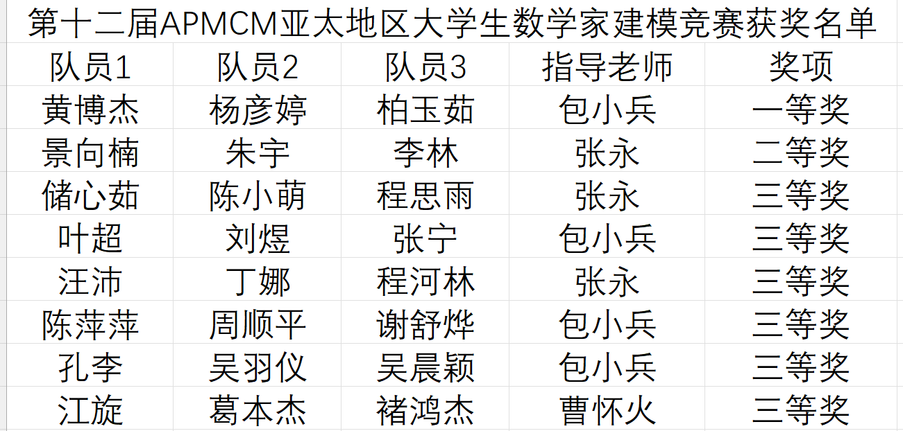 近日,2022年APMCM亚太地区大学生数学建模竞赛成绩揭晓,世界杯官网大数据与人工智能学院获得一等奖一项、二等奖一项、三等奖六项的优异成绩,其中黄博杰团队(指导老师:包小兵)获得一等奖。