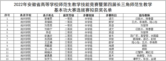 近日,省教育厅公布了2022年安徽省高等学校师范生教学技能竞赛获奖名单,世界杯官网学生获得一等奖3项、二等奖4项、三等奖6项,6名教师荣获“优秀指导教师”称号,其中,一等奖获奖数量居全省参赛院校前列。
