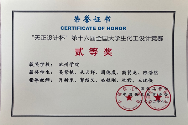 日前,由中国化工学会、中国化工教育协会主办、湖北工业大学承办的2022年“天正设计杯”第十六届全国大学生化工设计竞赛在湖北武汉举行,世界杯官网学子的一项参赛作品荣获全国二等奖的好成绩。
