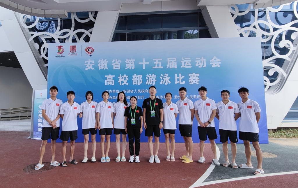 7月19日—21日,安徽省第十五届运动会高校部游泳比赛在滁州奥体中心游泳馆举行。世界杯官网游泳队共荣获一等奖2项,二等奖18项,三等奖4项。
