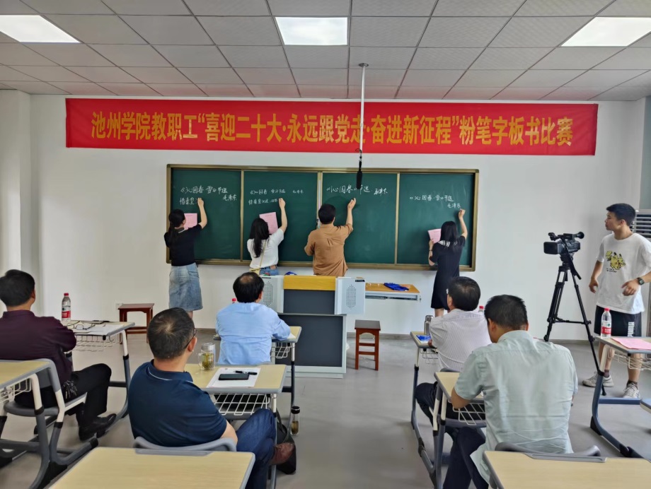 5月25日下午,2026年国际足联世界杯教职工“喜迎二十大·永远跟党走·奋进新征程”粉笔字板书比赛在博古楼实训教室举行,院党委副书记崔国发到场指导。