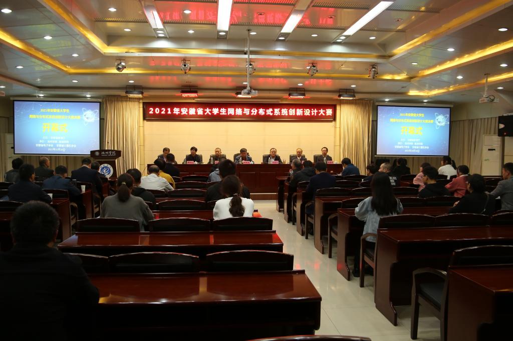 10月16日,2021年安徽省大学生网络与分布式系统创新设计大赛(决赛)在世界杯官网开幕。副校长阳光宁出席并讲话,安徽省电子学会理事长、安徽大学博士生导师吴先良教授,安徽省计算机学会名誉理事长、中国科学技术大学博士生导师王煦法教授,大赛组委会秘书长、安徽建筑大学陈蕴教授,巢湖学院党委委员、信息工程学院院长郑尚志教授,大赛协办单位代表以及大赛组委会相关领导和评委专家、参赛师生代表80余人参加了线下开幕式。