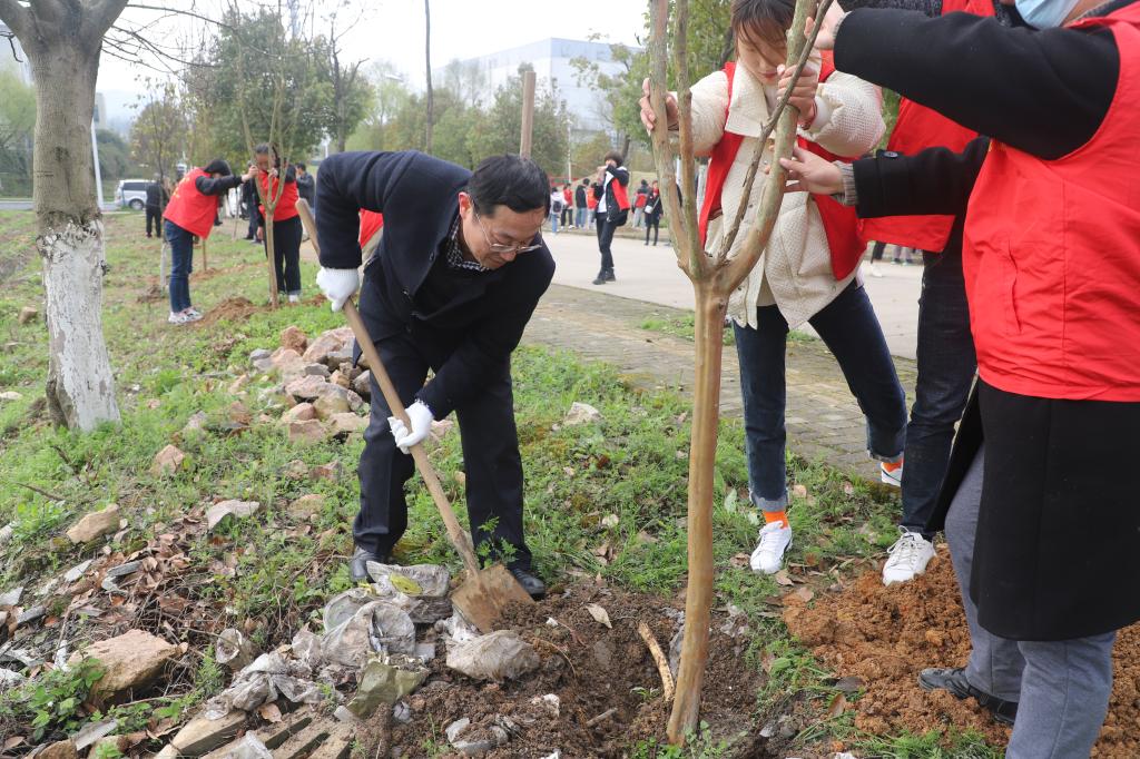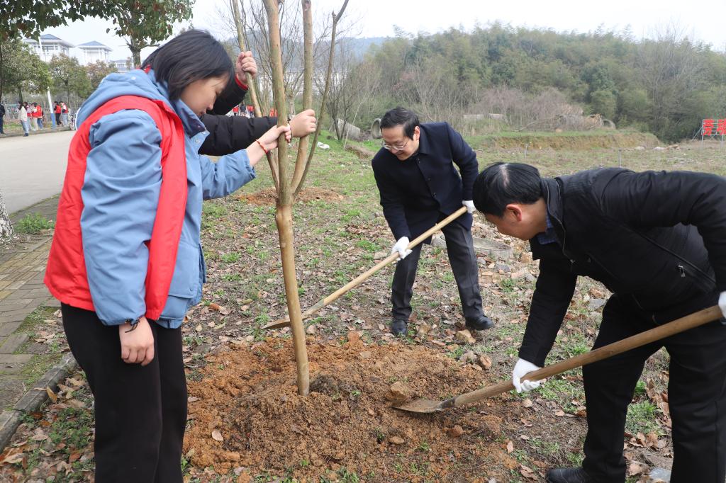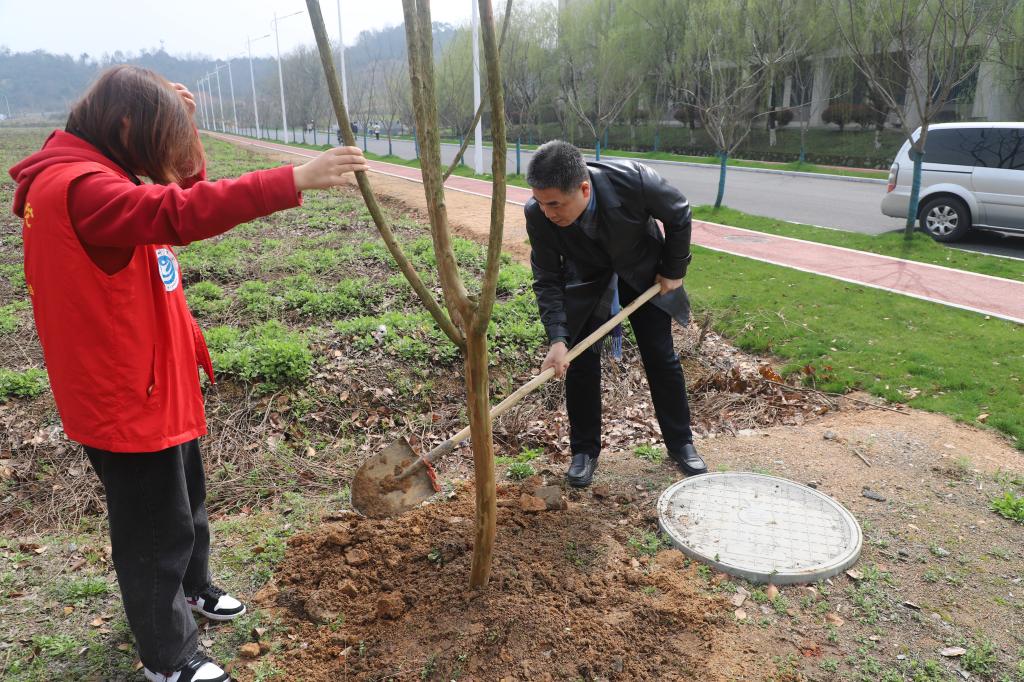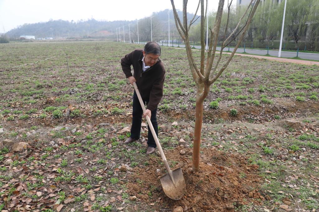 3月12日上午,为进一步践行习近平总书记倡导的生态文明理念,推进绿色校园建设及大学生劳动素养教育,校领导孙晓峰、柳友荣、崔国发、王延寿、汪海、汪贤才前往逸夫北路参加春季义务植树活动,用实际行动为绿色校园建设增绿添彩。