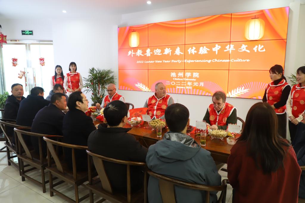 领略家风文化、观看茶艺表演、学习书写春联、亲手制作筷子……1月17日,学校组织外籍教师参加“外教喜迎新春、体验中华文化”活动,感受中国传统文化的魅力,迎接即将到来的中国虎年春节。学校党委书记孙晓峰出席活动并与外籍教师座谈交流。池州市外事办、池州市委外宣办、池州市公安局出入境管理支队等单位负责人受邀出席活动。