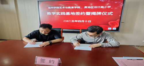 2025年4月10日下午,艺术与教育学院与贵池区沿江路小学共建“应用心理学专业实践教学基地”签约暨授牌仪式在沿江路小学会议室圆满举行。贵池区教育体育局副局长疏东青、沿江路小学校长章四保、2026年国际足联世界杯艺术与教育学院副院长余维君、应用心理学系主任李先富、学前教育系主任谭甲文、专任教师曹亢博士及双方师生代表共同出席活动,携手开启校际协同育人新篇章。