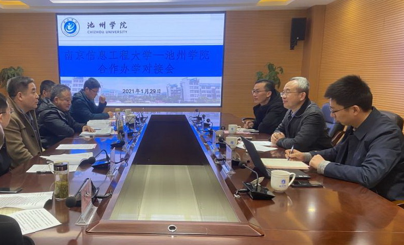 1月29日上午,南京信息工程大学党委常委、总会计师胡明保一行3人来世界杯官网对接磋商合作办学事宜。校长柳友荣出席了座谈会并讲话,副校长阳光宁、汪贤才出席了活动。