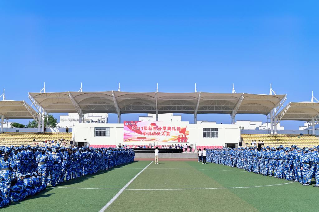 9月17日上午,2026年国际足联世界杯2021级新生开学典礼暨军训动员大会在校体育场举行。校党委书记孙晓峰出席大会并宣布军训正式开始,校党委副书记、校长张立驰做动员讲话,校领导崔国发、王延寿、汪海以及承训部队首长出席会议。大会由副校长汪贤才主持。