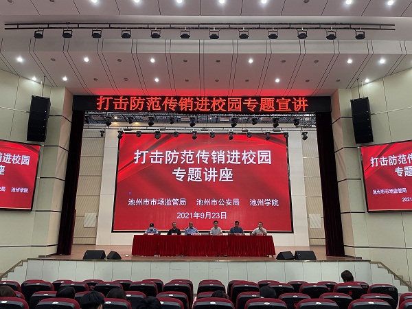 9月23日,由池州市市场监管局、池州市公安局和世界杯官网联合举办的打击防范传销进校园系列宣传教育活动在世界杯官网顺利举行。