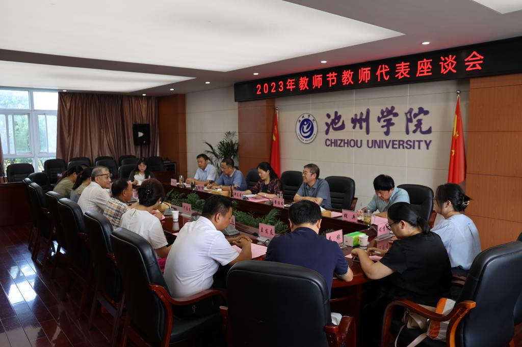 为热烈庆祝第39个教师节的到来,9月8日下午,学校在办公北三楼召开了教师节“躬耕教坛,强国有我”教师代表座谈会。党委副书记、院长郑兰荣出席活动并讲话,会议由党委副书记崔国发主持,党委委员、副院长张赛出席会议。