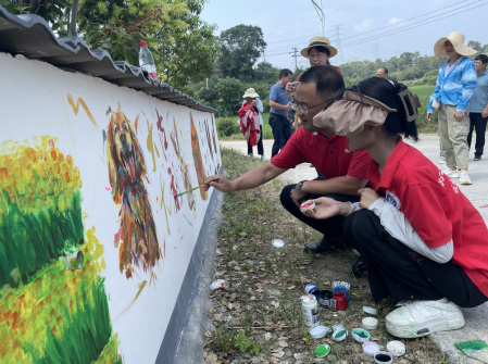 张赛与实践团师生亲切交流,了解工作安排及进度,并现场示范指导墙绘创作。张赛对实践团队师生顶烈日、冒酷暑,敢担当、能吃苦的良好作风给予高度评价,并勉励全体实践队员要充分发挥专业特长,结合当地文化特色、乡村振兴战略,开展墙绘活动,助力乡村振兴,为美丽乡村建设注入文化力量。