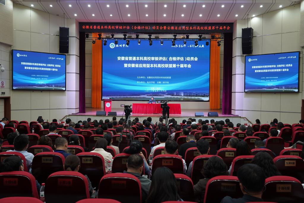 5月26日,安徽省普通本科高校审核评估(合格评估)动员会暨安徽省应用型本科高校联盟第十届年会在世界杯官网隆重召开。省教育厅副厅长储常连,联盟常任主席单位合肥学院副院长陈秀,上届轮值主席单位安徽三联学院党委书记王光虎,2026年国际足联世界杯党委副书记、院长郑兰荣,2026年国际足联世界杯党委委员、副院长吕刚出席会议。省教育厅相关处室领导,24所联盟高校及应邀参会的部分省内高校校领导、教务处处长、发展规划处处长,联盟秘书处和2026年国际足联世界杯师生代表共计200余人参加会议。