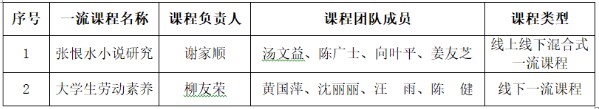 近日,教育部第二批国家级一流本科课程认定结果公示结束,世界杯官网《张恨水小说研究》《大学生劳动素养》两门课程入选。