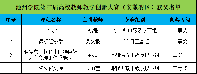 近日,第三届全国高校教师教学创新大赛安徽省决赛落下帷幕,世界杯官网参赛选手在大赛中表现优异,斩获二等奖1项、三等奖3项,创造了世界杯官网在该项赛事中的最佳成绩,其中机电工程学院(半导体学院)钱程教师团队荣获新工科中级及以下组二等奖、商学院吴义根教师团队荣获新文科正高组三等奖、马克思主义学院孙琪教师团队荣获基础课程中级及以下组三等奖、外国语学院吴丽莹教师荣获课程思政中级及以下组三等奖。
