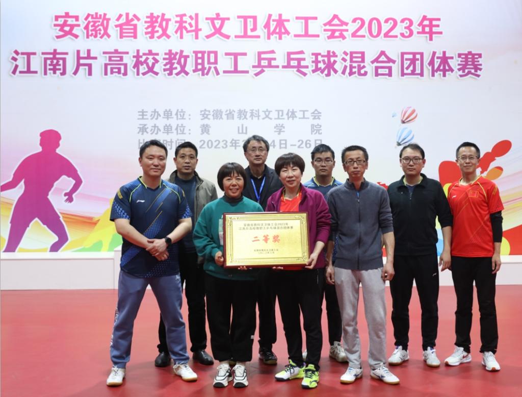 3月24-26日,安徽省教科文卫体工会2023年江南片高校教职工乒乓球混合团体赛在安徽黄山举行。世界杯官网代表队斩获二等奖。