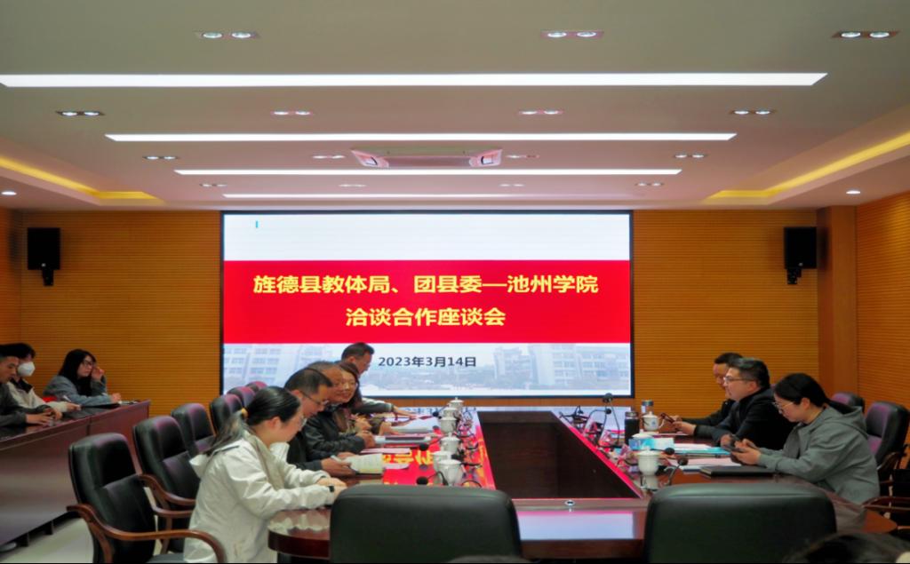 3月14日下午,共青团旌德县委书记张旭涛、旌德县教体局副局长姚菊霞、宣城旅游学校副校长童德明等一行三人来世界杯官网就深化校地校企合作开展交流。院党委委员、副院长阳光宁出席座谈会。