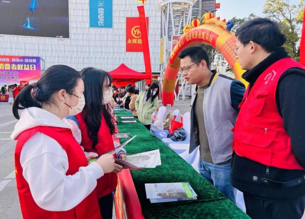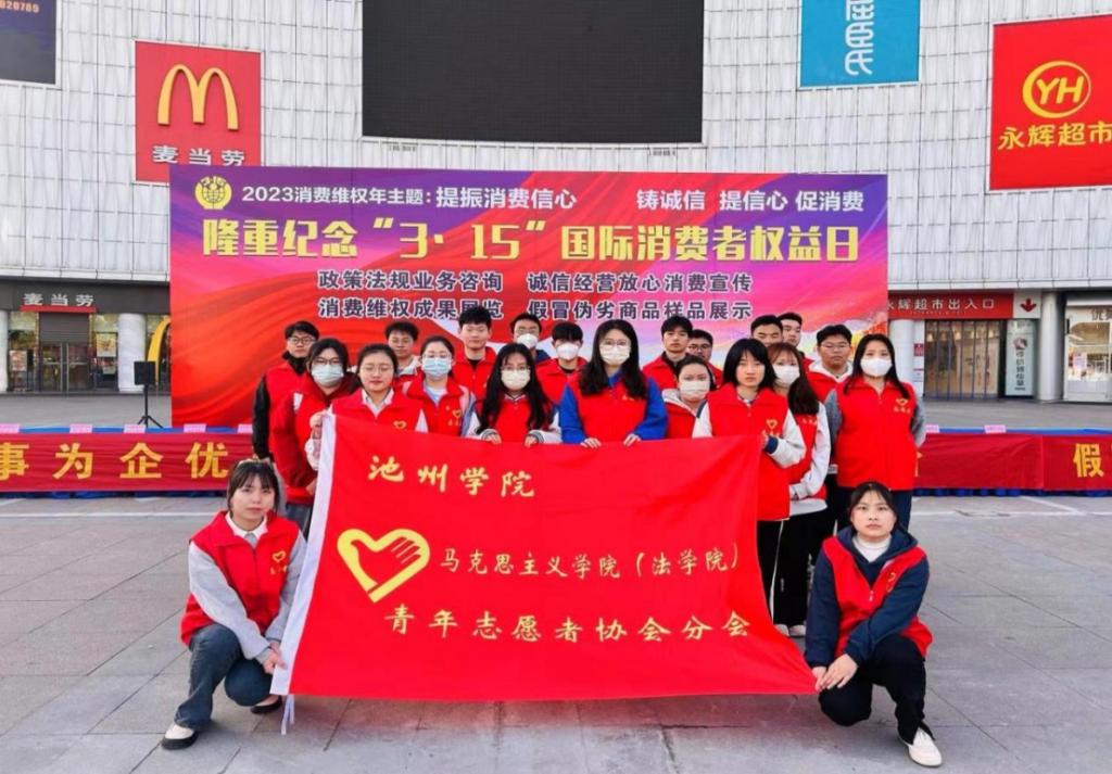3月14日上午,世界杯官网组织大学生志愿者参加池州市2023年国际消费者权益日纪念活动。