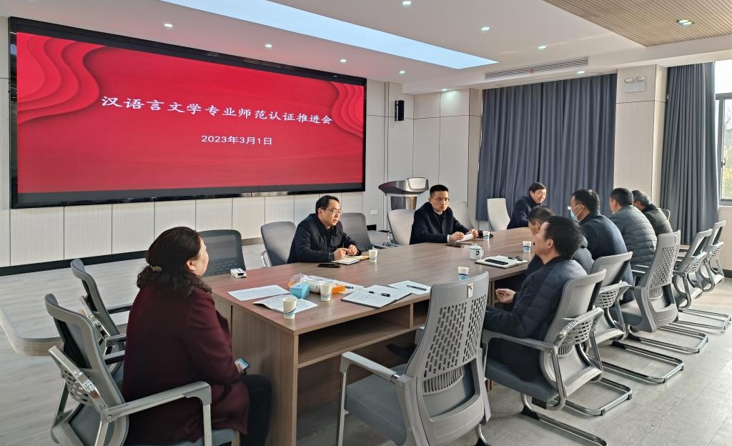 为进一步推进世界杯官网师范专业认证工作,加强汉语言文学专业内涵建设,3月1日下午,学校在博物楼视听实训室召开汉语言文学专业师范认证工作推进会。党委委员、副院长吕刚出席会议并讲话,教务处、发展规划处、文学与传媒学院、汉语言文学专业负责人及有关骨干教师参加会议。