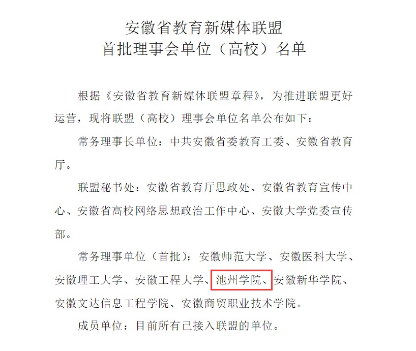 近日,中共安徽省委教育工委公布了安徽省教育新媒体联盟首批常务理事单位(高校)名单。世界杯官网成功入选为首批八所常务理事单位之一。