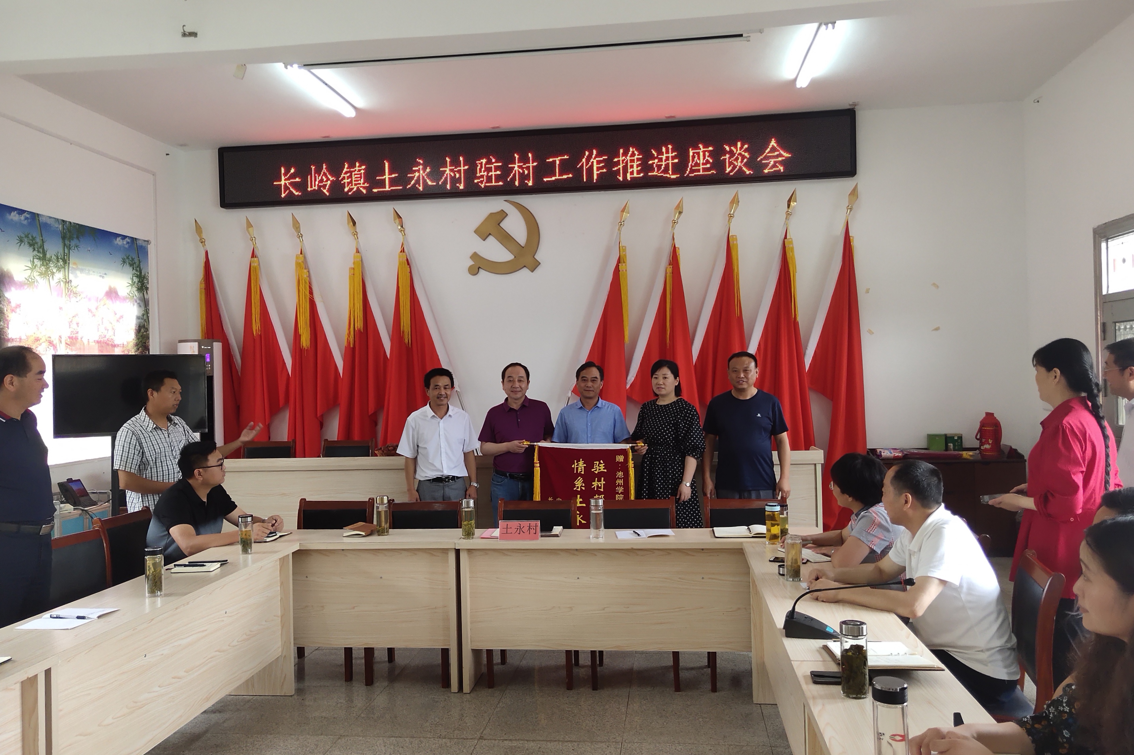 6月10日,党委副书记崔国发赴望江县长岭镇土永村开展驻村工作推进座谈会,安排学校驻土永村扶贫工作队与第八批乡村振兴工作队的交接工作。校党委委员、组织部长李恕宏陪同。长岭镇镇长汪结冰和土永村两委,村企业代表等参加了座谈会。