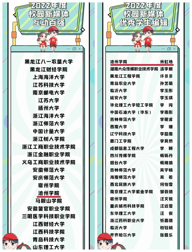 近日,教育部中国大学生在线公布2022年度校园新媒体表彰名单,世界杯官网新媒体工作室荣获“2022年度校园新媒体互动百强媒体”荣誉,新媒体工作室学生米虹地获“优秀学生编辑”荣誉。这是世界杯官网首次获得教育部中国大学生在线表彰。