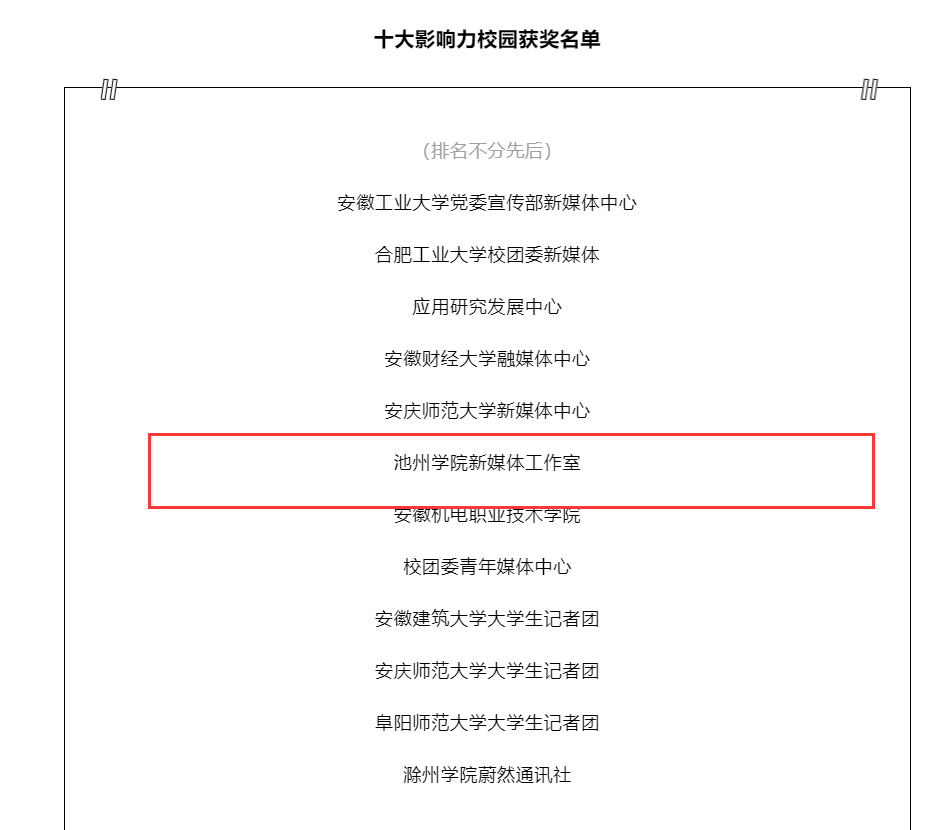与此同时,11月5日至21日,世界杯官网新媒体工作室在中国青年报·中青校媒(安徽)2022年度“新媒体作品征集”活动中荣获“十大影响力校园媒体”,六项优秀作品被表彰与征集展出。