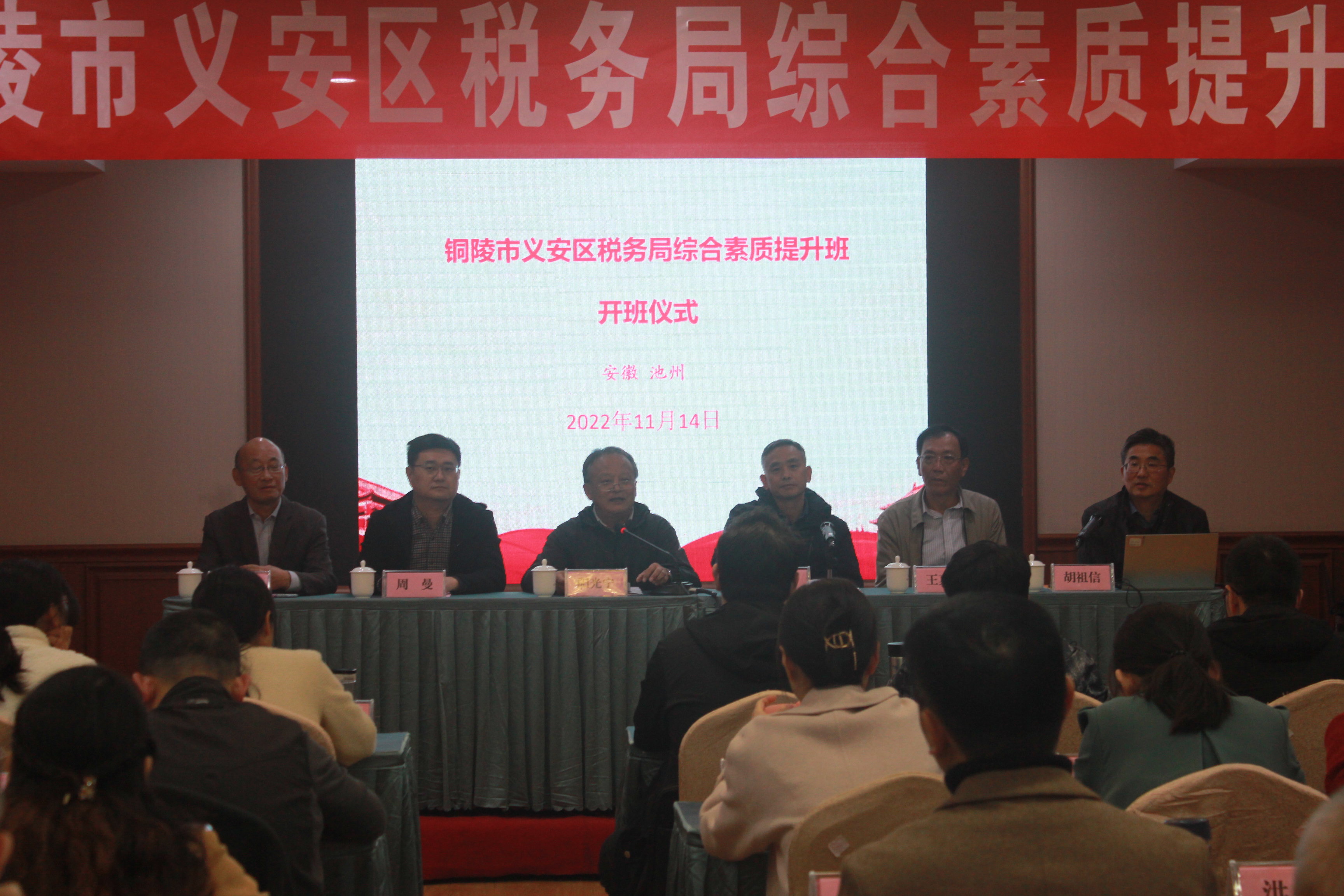 11月14日—18日,铜陵市义安区税务局综合素质提升培训班在世界杯官网成功举办。14日下午,开班式在天水湾酒店七楼会议室举行。院党委委员、副院长阳光宁,铜陵市义安区税务局党委委员、副局长崔前开出席活动。