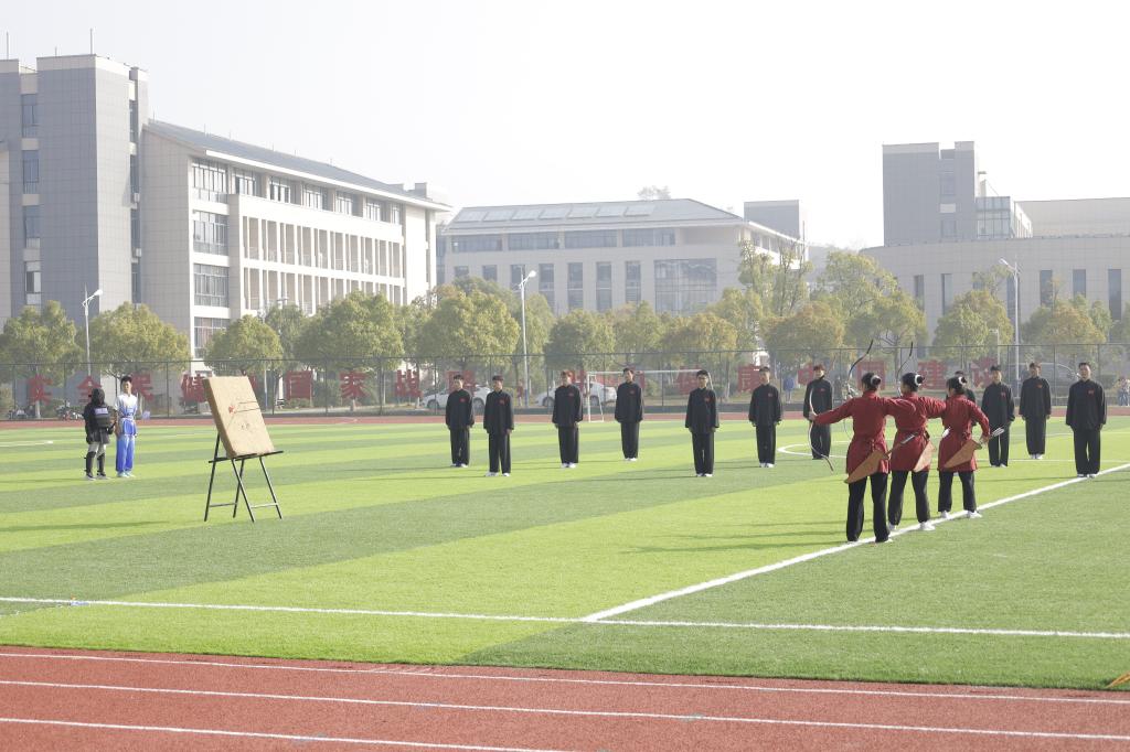 开幕式上进行了文体表演。八段锦柔和舒缓、刚柔并济,展现了教师们良好的精神风貌与强健的体魄;国术社的射箭、短兵和武术表演,将青春力量与武术文化相融合,刚健有力;体育舞蹈、健美操、爵士舞等多种舞蹈表演,彰显池院学子的青春与活力。
