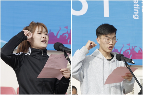 裁判员代表罗丹妮老师与运动员代表邓隆正同学分别代表赛事裁判员和运动员宣誓。