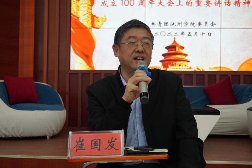 崔国发强调,全校各级党组织、团组织要把学习宣传贯彻习近平总书记在庆祝中国共产主义青年团成立100周年大会上的重要讲话精神作为当前一项重要的政治任务。要抓好学习宣传,深刻领会习近平总书记重要讲话的精神实质和核心要义。要抓好贯彻落实,推进团员青年成长进步和共青团工作再开新局。要矢志奋斗,在实现民族复兴伟业中谱写新时代的青春之歌。他希望广大团员青年坚守理想、坚定信念、刻苦学习、锐意创新、敢于斗争、善于斗争、艰苦奋斗、无私奉献、崇德向善、严守纪律,让青年在祖国和人民最需要的地方绽放绚丽之花。