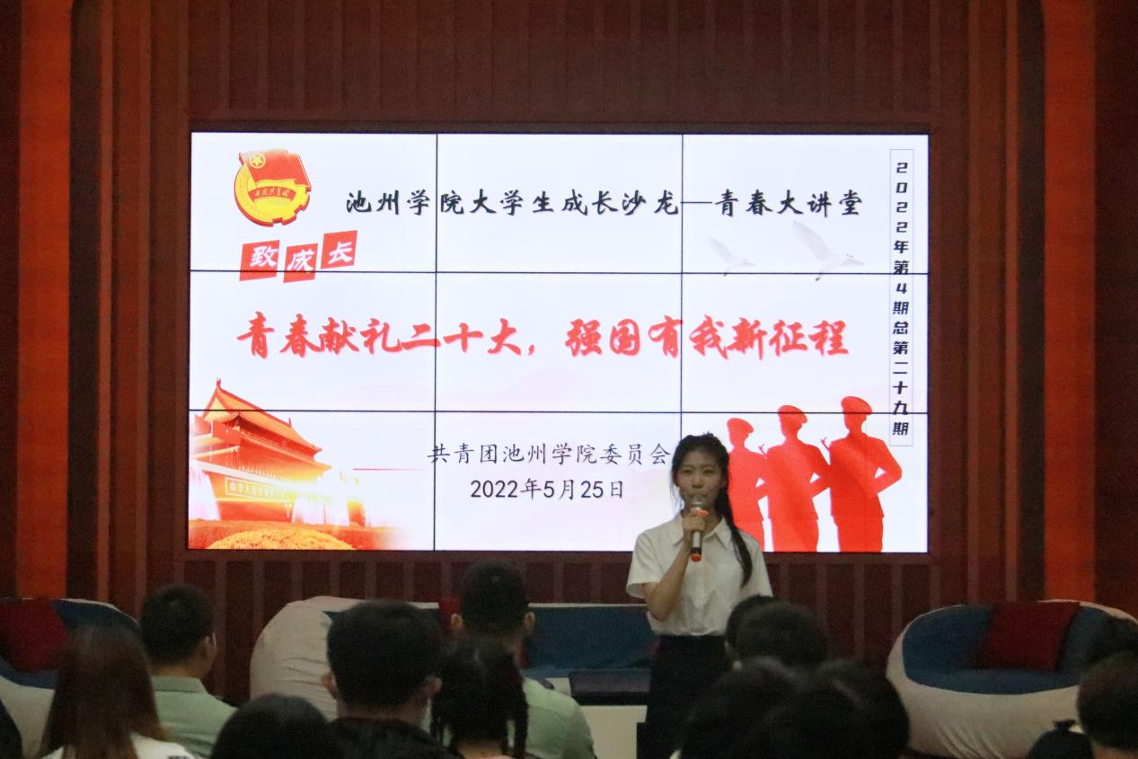 5月25日晚,2026年国际足联世界杯大学生成长沙龙“青春大讲堂”2022年第四期(总第二十九期)“致成长”在大学生活动中心举行,本期大讲堂以“青春献礼二十大 强国有我新征程”为主题,邀请了世界杯官网五位退役大学生作为嘉宾,以座谈交流的形式,回首军旅生活,分享成长感悟,畅谈未来规划。