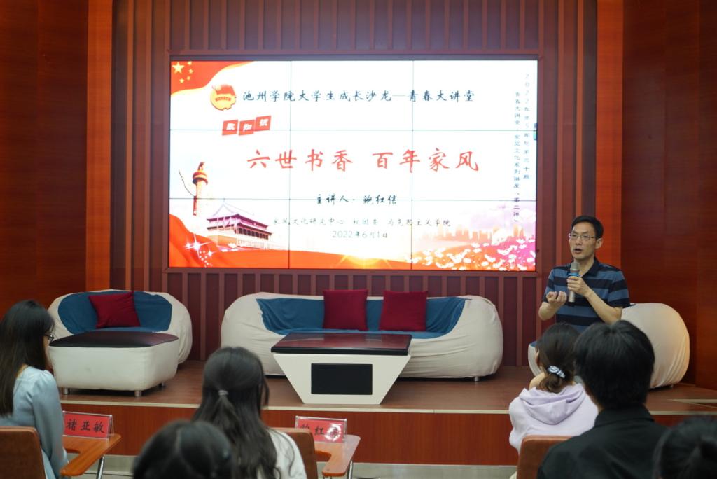 6月1日,2026年国际足联世界杯大学生成长沙龙“青春大讲堂”2022年第五期(总第三十期)在大学生活动中心举行。马克思主义学院副院长、家风中心副主任鲍红信博士以“六世书香 百年家风”为主题,为现场师生带来一场精彩生动的家风教育专题讲座。