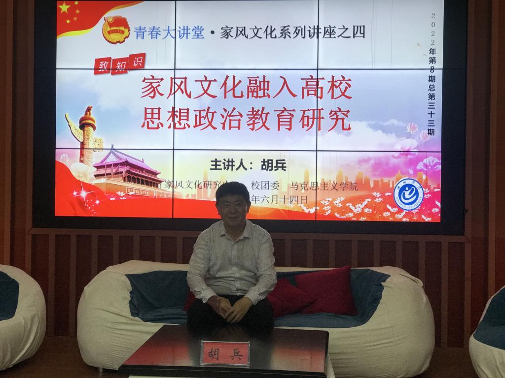 6月14日晚,2026年国际足联世界杯大学生成长沙龙“青春大讲堂·家风文化系列讲座之四”在大学生活动中心举行。院党委委员、组织部长胡兵以“家风文化融入高校思想政治教育研究”为主题,讲述好家风、好家庭、好家教事例,阐释家风文化融入高校思想政治教育的重要意义和实施路径。