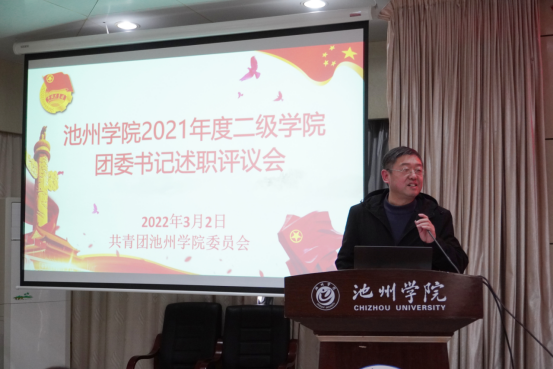 会议对11个学院团委负责人述职情况进行了现场集中点评,与会人员就各学院团委负责人履职情况进行了民主测评。