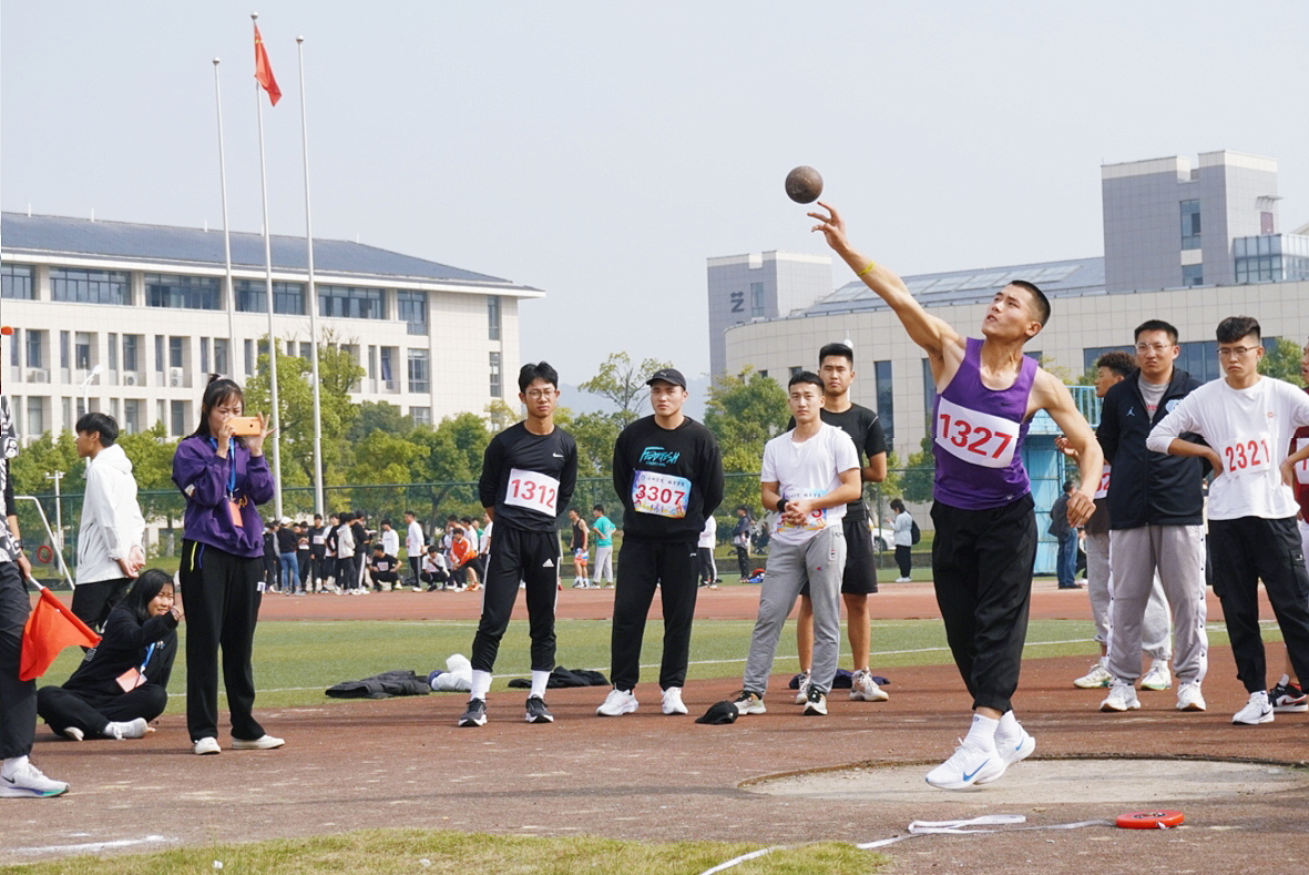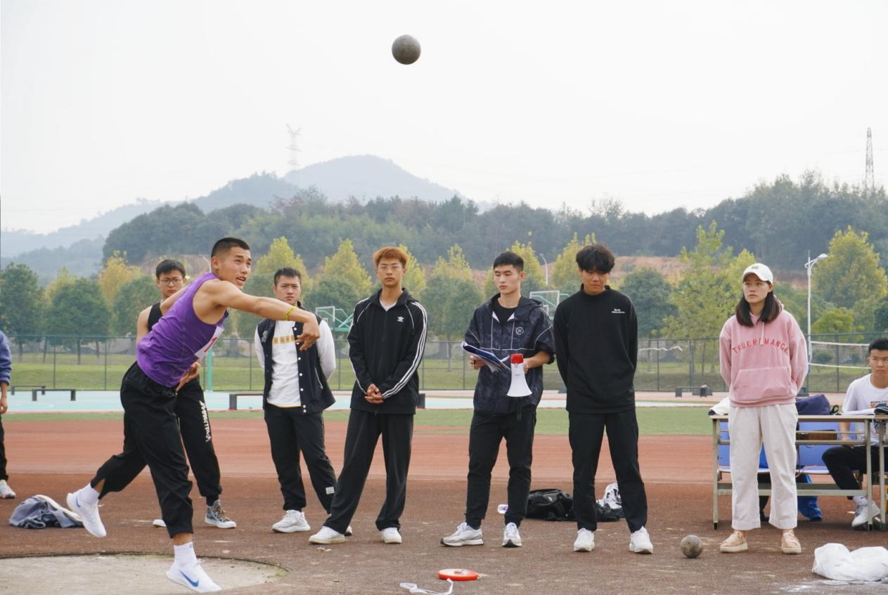 铅球运动员转身、后仰、投掷,整个动作一气呵成。一声哨令,沉重的铅球被掷向远方。