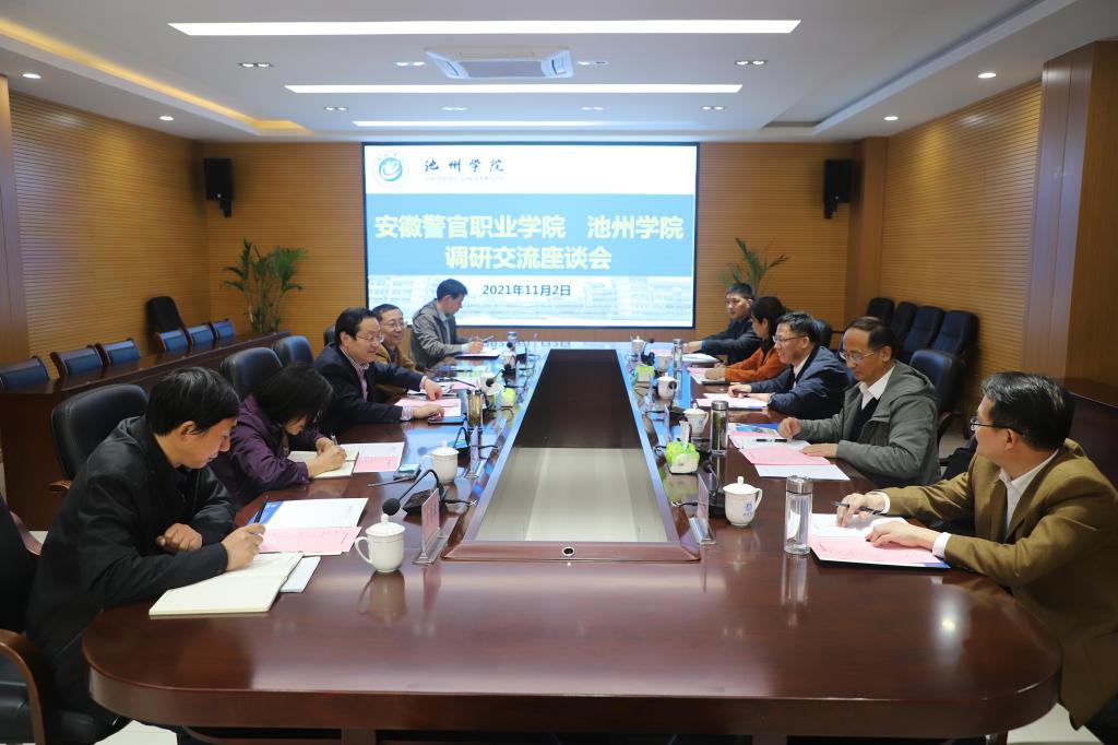 11月2日下午,安徽警官职业学院院长操申斌、副院长周善来等一行5人来世界杯官网调研交流。校党委书记孙晓峰主持座谈会并讲话,副校长汪贤才出席座谈会。