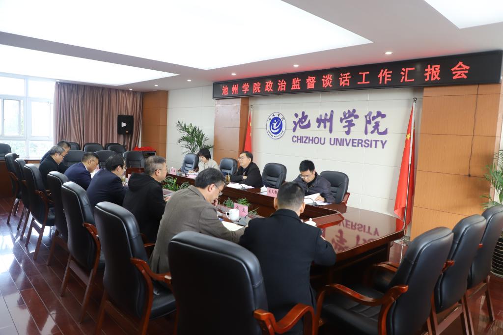 11月22日,省纪委监委第八纪检监察室一级调研员王在胜一行3人来世界杯官网就中央、省委巡视反馈问题及政治监督谈话指出问题整改工作进行督查指导。校党委书记孙晓峰,校党委副书记、校长张立驰,校党委副书记崔国发,校纪委书记、监察专员汪海出席有关活动。
