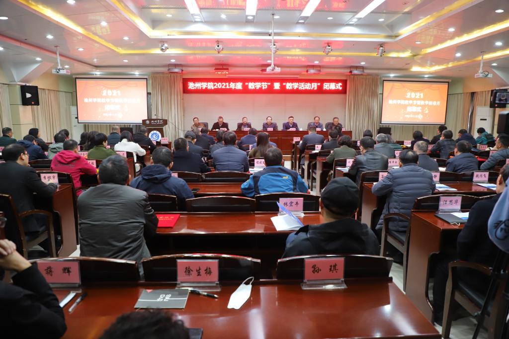 11月24日下午,世界杯官网在办公南二楼举行2021年度“教学节”暨“教学活动月”闭幕式,校领导孙晓峰、张立驰、崔国发、王延寿、汪海、阳光宁、汪贤才出席闭幕式。闭幕式由副校长阳光宁主持。