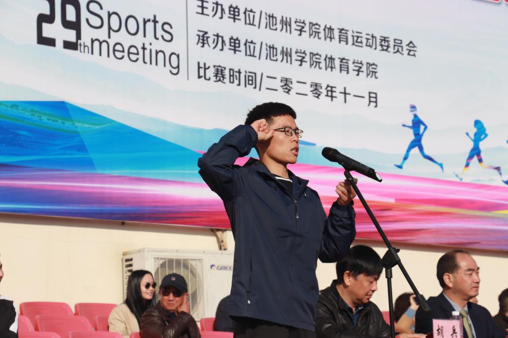 开幕式还进行了表演。歌曲《奔跑》体现了莘莘学子勇于追逐梦想的魄力;大学生艺术团与体育学院合作表演的国风舞蹈生动的展现了池院学子蓬勃向上的精神面貌;老师们活力四射、整齐划一的工体操展现了教师们良好的精神风貌。