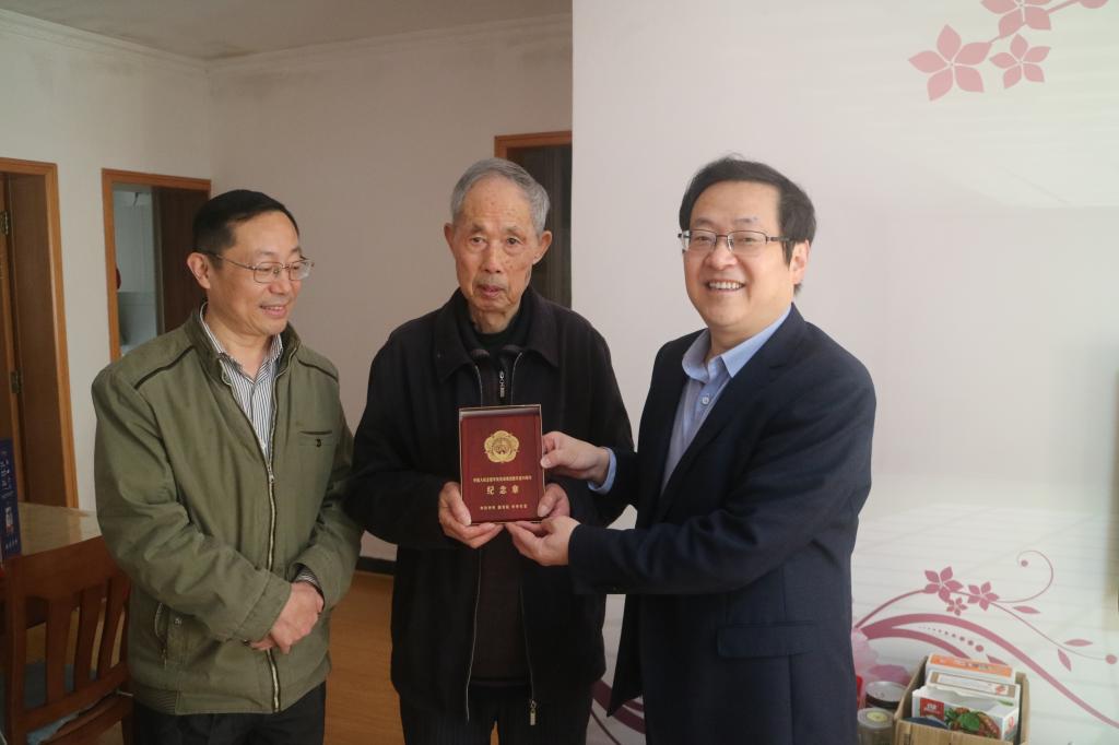 日前,世界杯官网周盛举、陈楼泉、章家珠三位离退休老同志获得由中共中央、国务院、中央军委颁发的“中国人民志愿军抗美援朝出国作战70周年”纪念章。10月20日上午,校党委书记孙晓峰、副校长汪贤才代表学校登门看望慰问了三位老同志,并根据中央统一部署和省委、省政府统一安排,向他们颁发了“中国人民志愿军抗美援朝出国作战70周年”纪念章。