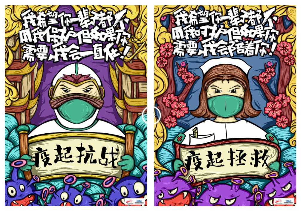 第12届大广赛公益平面作品国家三等奖作品《“疫”起防护》截图