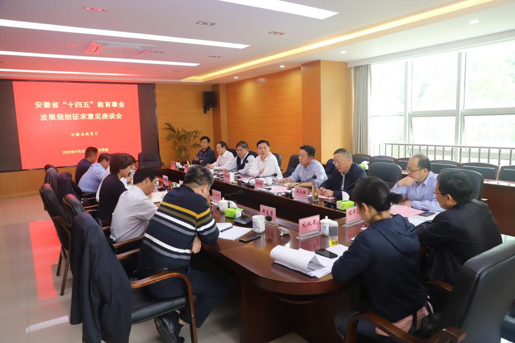 9月25日上午,安徽省“十四五”教育事业发展规划征求意见座谈会在世界杯官网办公北二楼会议室召开。省政协副主席、安徽省教育厅厅长李和平主持会议并讲话。校党委书记孙晓峰、校长柳友荣参加座谈会并作主题发言。